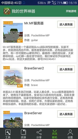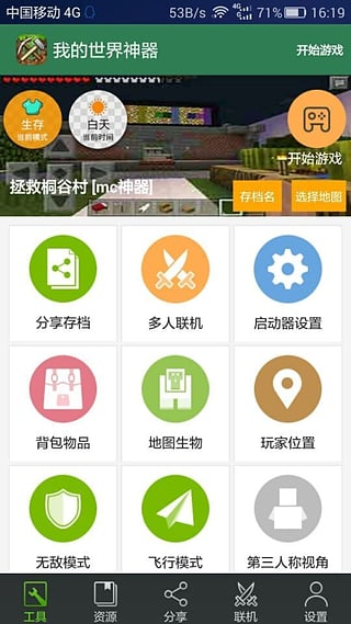我的世界神器是专为Minecraft PE打造辅助工具,除了启动游戏一键联机外,还拥有丰富的地图、存档、js插件、皮肤、材质等资源。【软件特点】