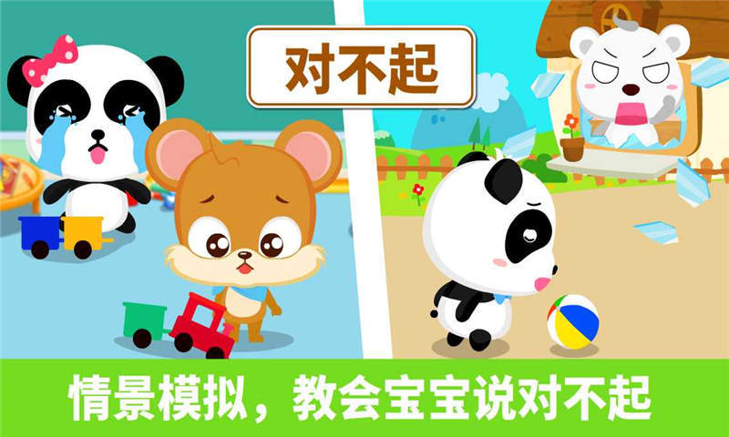 1.操作简单,让低龄宝宝也能轻松上手;2.情景代入式教学,学习+运用双模式,让宝宝不仅会说更会运用;