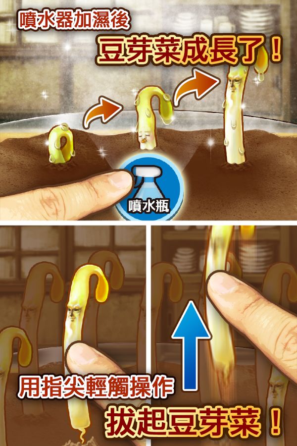 放置养成豆芽人是一款休闲益智类的养成手游。在这里玩家们将换个品种养成,那就是可爱小巧的豆芽君,松土、播种、浇水、施肥,等他们长大成“人”就可以卖了。