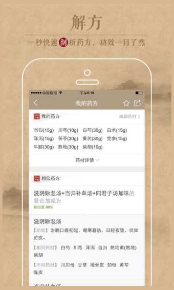 以传统中医药学为根本,收录25000个经典药方、13000种经典药材祛湿治燥、补益安神、理气理血等大小病症皆有对策;