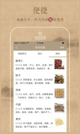 随时随地查询、收藏药方,手到擒来。
