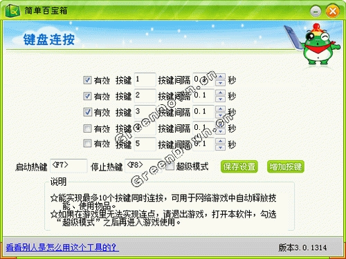 简单游鼠标连点器 所有游戏通用,最快速度每秒点1000次!哈哈!不管你是要奇迹连点器,龙族连点器还是千年连点器?不用再找啦!简单百宝箱鼠标连点器统统满足你,而且永久免费,绿色免安装