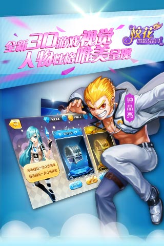 《校花的贴身高手3D》改编自起点白金作家“鱼人二代”的同名人气小说。游戏在高度还原原作的人物设定及剧情故事的同时,通过丰富的系统养成设计、多样的玩法功能,绚丽的画面效果让玩家重温小说故事的同时享受别样的游戏经历,体会校花在侧、神技傍身、四方相应的高手快感。首款青春校园题材手机游戏,即将引爆今年夏天最激情的游戏体验!游戏采用当前最流行的回合制3D卡牌模式,你将在游戏中化身林逸的角色,且看小小高中生如何俯瞰校园,纵横天地,睥睨天下!