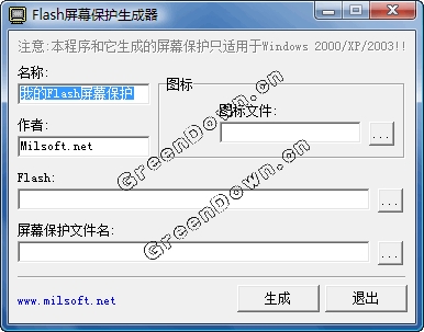 把FLASH转换成屏幕保护 允许自定屏幕保护名称、自定作者名、选择自己喜爱的图标