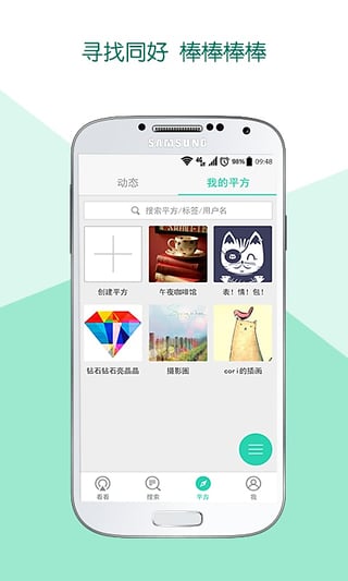 来B平方,用最具“青春印记”的图文,打造“无所不能”的平方(群)。用我们在生活中最具逼格的图片沉淀自己生活的足记,在被别人围观的同时向世界展现你的格调。B平方,是一款基于平方的优秀移动社交产品,用户可以通过一个相同的兴趣点来加入或创建平方,在平方内用照片发布个人动态,并通过内置的滤镜功能留住生活的足记、用贴纸及打码表述青春的记忆、让生活中的每一刻都变得清新文艺、欢乐十足,让你在想要展示高逼格的瞬间想到的就是与某个平方(群)中的好友一起分享。