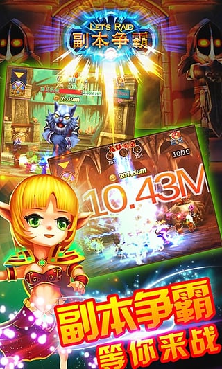 《副本争霸》是一款魔幻风格的休闲RPG,游戏具有3D画面,次世代游戏品质。它讲述了玩家扮演一名死亡骑士,带领精心选取的10名小伙伴一路挑战副本,最终击败终极BOSS,拯救世界的故事。首款吊打boss的3D休闲RPG,无CD反复收割,爆炒大螺丝、清蒸傻飞龙,更有黑龙妹妹等着你,时间就是金钱,快来组团吧我的朋友。