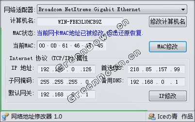 功能:修改网卡MAC,IP,计算机用户名,含有更换记录功能