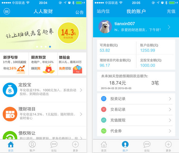 人人聚财app接入民生银行“网络交易平台资金托管系统”,为用户提供实名验证、支付结算、资金托管、余额理财等多项服务。同时,民生银行将为人人聚财投融资双方设立独立账户,有效实现资金的隔离监管,保障用户资金安全。接入民生银行资金托管系统之后,人人聚财的用户进行绑卡、充值、投资、提现等资金操作时,都会在民生银行页面上进行,页面中都会有民生银行Logo。民生银行还将设立一站式的账户信息查询平台,人人聚财的用户将可以在民生银行官网上查询到自己充值、投资、提现等账户明细信息,极大的方便了用户自身的投资管理。【更新日志】