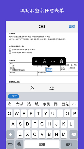 Adobe Fill & Sign DC办公更方便咯!需要填写和签名任意表单,只需要直接捕捉纸质表单的图片进行填写也轻而易举,无需打印或发送传真。