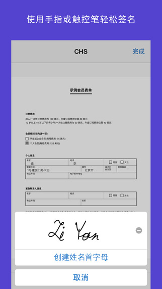 - 使用手指或触控笔轻松创建签名