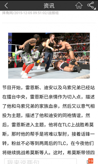 资讯、赛事、视频、图片让你获取第一手信息结识摔迷朋友