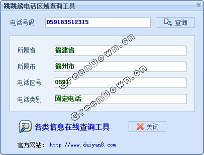 一个简洁的电话区域查询工具,您只需输入电话号码,就可查询到电话所在的地区信息。 工具包含了一个整理好了超过17万条电话区域信息的access数据库,您可以免费试用。数据库密码请到官方论坛索取