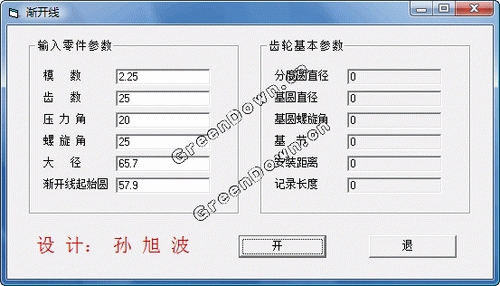 齿轮计算软件 V1.2 简体中文绿色免费版 齿轮计算是机械设计,特别是传动变速系统设计中的重要设计之一。本软件将齿轮的基本参数计算公式程序化。根据齿轮的模数、齿数、压力角、螺旋角、大径、渐开线起始圆这六个设计参数,自动计算:分度圆直径、基圆直径、基圆螺旋角、基节、安装距离以及记录长度