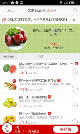 1.注册有礼:注册即可得14元红包,满10减9,等于免费吃水果。