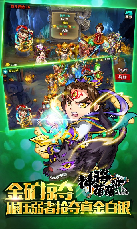 2015最乱斗第三代卡牌手游《神将萌萌哒》!突破传统卡牌束缚限制,带你领略三国与封神人物之间的炫酷战斗!全新感受弹指间敌人灰飞烟灭、畅快斩杀的爽快体验。“神将萌萌哒”设定在一个奇异错乱时空之中,玩家在曲折离奇的故事情节中,被引导着建立抗争魔兵的据点,攻城略地展开与上古圣魔的正邪大战,并且一步步揭开时空错乱之谜。
