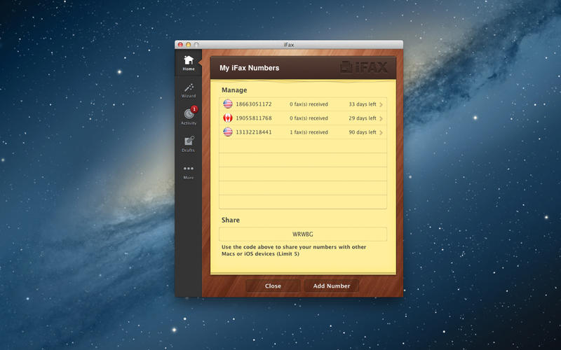 iFax for Mac从来没有错过一份传真。得到移动新传真或电子邮件通知已经到来。电子邮件,随时打印或下载您的传真。一个数字,许多设备。与iFax分享你的传真号码等其他设备你的iPhone,iPad,苹果或安卓设备,传进来的传真在你方便的时候。打开邮件,签名,填满。你从邮件可以打开一个PDF,Dropbox,或盒子,然后签字,填满,邮票,或注释,然后传真文档——所有不需要打印或扫描。文档扫描仪。扫描文档iFax手机或平板电脑随时相机然后传真给他们。不再笨重扫描仪!Dropbox和邮箱集成。访问您的文件存储在云端,在任何时间和任何地方。