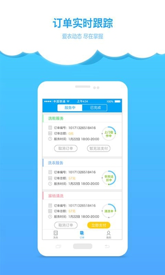 洗衣就用e袋洗,幸福生活每一天。下载app,新客可享受1元洗衣,2元洗鞋,免费上门取送。【软件特点】
