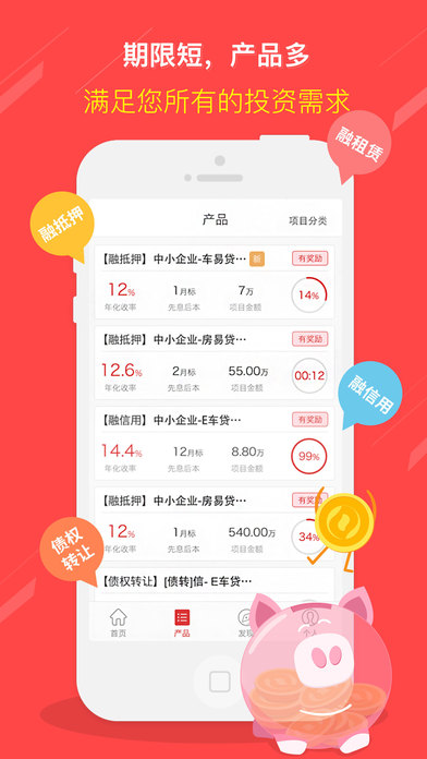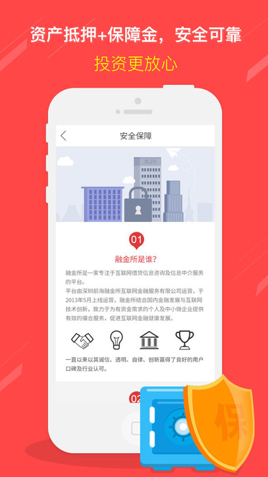 融金所理财app移动互联网网贷平台之一,融金所理财app在车抵业务是各大互联网金融当中做的最好的一个,融金所理财app收益率挺高的,平台走集团化模式,网络借贷、网络投资、资料审批、资产管理、资信评估、风险控制等六大服务体系,并已形成了“一站式”的金融服务平台。