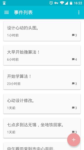 1. 事件列表分页:浏览生活中的大小事。2. 今日分页:浏览当日事件,发表感想,记录新事件。