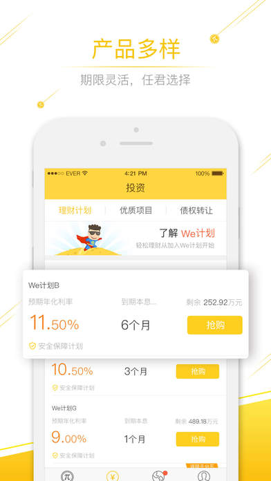 - 全新「自动投标」功能上线,支持投资智享转让、We+自动投标服务、We自动投标服务