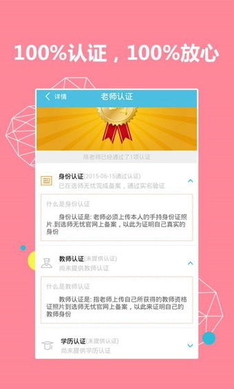 选师无忧app是一款专业的中小学家教神器,选师无忧运用心理学技巧,启蒙学习热情,让学习从被动到主动,改变人的学习习惯,这个出发点很好。【软件特点】