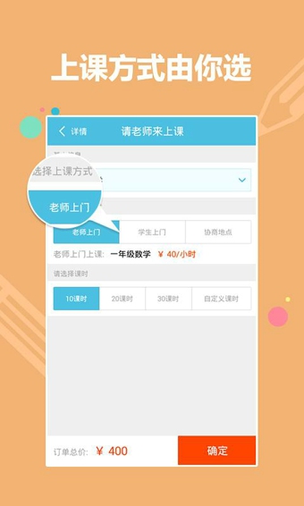 1.强大搜索:科目、姓名、院校等多维度搜索老师,学校名气、距离、人气等便利筛选。2.在线订课:找到最合适您的老师后,您可以在线一键预订,理想名师一步到位。