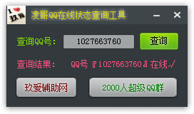 凌哥QQ在线状态查询工具下载 1.0 最新绿色版 凌哥qq在线状态查询是一款小巧绿色的QQ在线状态查询工具。该工具不仅简单实用容易上手,还可为用户轻松提供在线QQ状态查询功能,一键就可以查询,非常方便哦。
