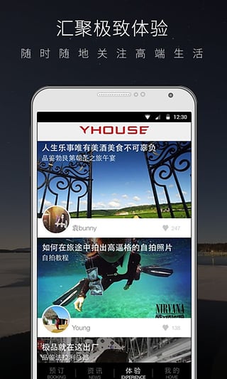 YHOUSE悦会,中国第一高端生活移动社区,致力于为全球华人富裕家庭、消费升级以及高端生活爱好者,提供最丰富的高端生活服务预订、高端新闻资讯与体验分享、以及高端圈层社交。YHOUSE悦会在线上打造移动APP、移动杂志等组成的中国最权威的高端生活移动社区,在线下提供包括美食美酒、时尚生活、豪车体验、珠宝腕表、极致旅行、艺术收藏等领域的超过3000个独一无二的高端生活方式服务。