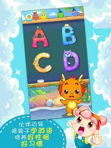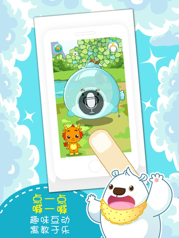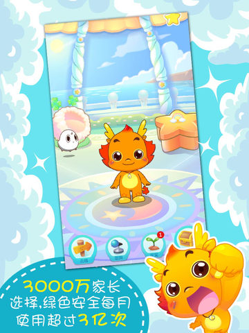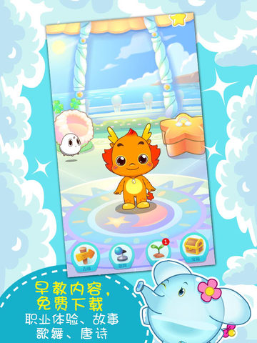 小龙人的形象深受孩子喜欢,它可以叫出宝宝的名字,据说这是首款可以叫宝宝名字的幼教类APP 。在这款APP中,有孩子喜闻乐见的儿歌童谣,孩子喜欢和小伴龙一起又唱又跳,在孩子的认知方面做得尤其出色。以认识水果为例,并不是单纯地告诉孩子水果叫什么,而是设置一个场景,从众多水果中挑出苹果,在苹果树上摘下果子、用手指拖一拖放进榨汁机,机器转动,小伴龙杯子里装满了果汁,一口喝掉后会表扬孩子真能干。或者摘下水果后引导孩子切水果,用手掌切屏幕,果子就变成了两瓣,或者更多瓣,孩子玩这个游戏不知疲倦。玩完这个游戏,孩子不仅知道哪种水果叫什么名字,还学会了怎么榨汁,怎么把苹果切成两瓣,思维非常发散。