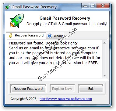 Gmail Password Recovery V1.10 英文绿色特别版 一系列帐户密码软件,它可以用于所建的帐户密码,支持多帐户等。发布说明:分别对应 AIM、 FileZilla、 Gmail、 Google、 Google.Talk、 PalTalk、 MSN、 Windows.Live、 Trilian。