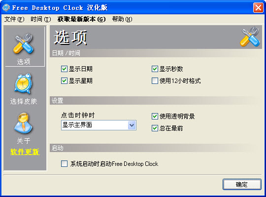 Free Desktop Clock v3.0 汉化绿色免费版 Clock Tray Skins Lite也叫Free Desktop Clock,它是一款免费的桌面时钟小软件,安装后,它会自动替换掉系统状态区的Windows默认时钟。软件自带了数十种的时钟皮肤,你可以随意更换。