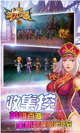 1换装系统:英雄百变,全新套装层出不穷!是否厌倦了全部长得一成不变的卡牌人物?剑刃风暴独有的配装系统让每个英雄依照配装改变形象,达到不同的阶段,玩家可以自由更换英雄的形象,让你体验手机玩大型端游的感觉!