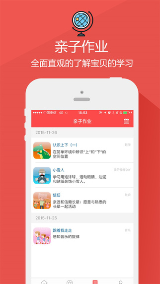 园所动态:实时查看园所通知、班级通知、园所活动照片、园所教学视频;亲子作业:为教材量身定制的学习应用,寓教于乐,让幼儿巩固知识,快乐学习;