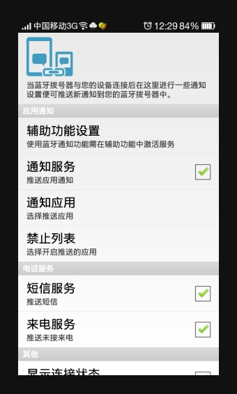 1、当蓝牙拨号器与您的设备连接后,在这里进行一些通知设置便可推送新通知到您的蓝牙拨号器中;2、实时查看通知、信息、来电,一个不漏;