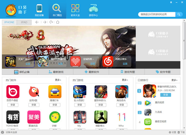 免越狱下载正版应用,方便的照片、铃声、视频等资源管理,让你轻松实现PC、手机的资源互通。
