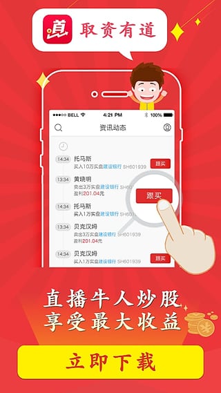 取资有道是一款手机投资炒股软件,主要服务于股票短线操作者,取资有道让投资者更安全、更放心的去投资操作股票,风险小收益高,是短期来钱快的项目之一,用取资有道让你把握住最佳的投资机会,赚取更高更多的收益回报。取资有道是一款专为股票短线操作提供保证金交易的手机客户端。致力于让投资者享受更快捷、更安全、更高收益的股票实盘操作体验及增值服务。