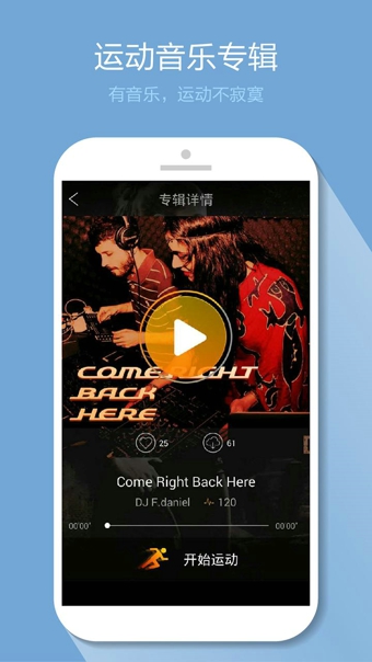 精准记录跑步、骑车、走路的数据,让你“动而自知,乐享动”!在这里:坚持不再难!精选运动音乐专辑,完美打造40分钟一次的音乐健身计划,不知不觉中燃烧完多余卡路里。