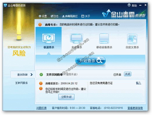 金山毒霸极速正式版 V1.0 简体中文官方安装版 金山毒霸极速版是一款针对笔记本及上网本量身定做的新一代杀毒软件。针对系统内存、CPU、IO设备的精细优化,历经5年研发重构系统底层引擎而成的极速引擎,使之在便携电脑上运行如飞,整体性能得到提升!全面运用云安全技术,过亿联机查询,更将安全性提升一层,有效抵御流行病毒木马入侵。金山毒霸极速版同时针对上网本进行界面优化,增加电池续航时间,亦是对系统性能一般的台式机用户的良好选择