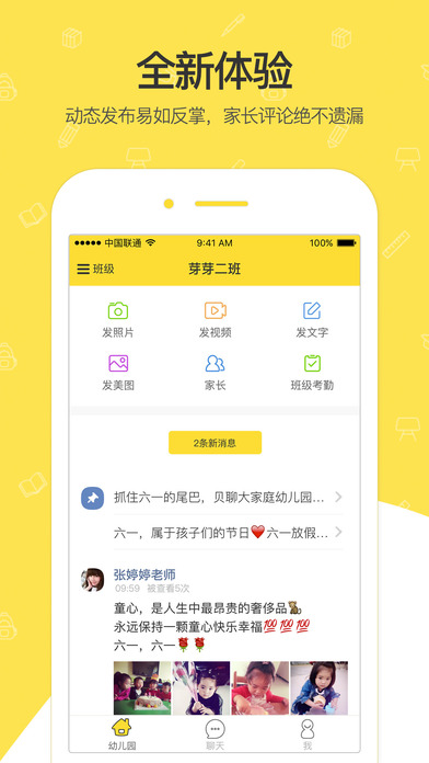 家园沟通——宝宝在幼儿园吃什么,学什么,宝宝的每个成长,都可随时与家长沟通。透明式教学,提升家长满意度。园务管理——幼儿园通知置顶,已读提示等功能,改进园务工作,减少老师园长的琐碎工作,提高工作效率。封闭群组,园长可随时监控园所负面信息,方便管理。