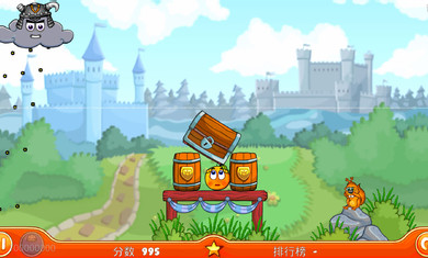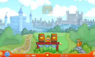 4、将木箱木板等放在合适的位置,而后空中就会有飞镖轰炸,如果橘子安全则关卡通过!