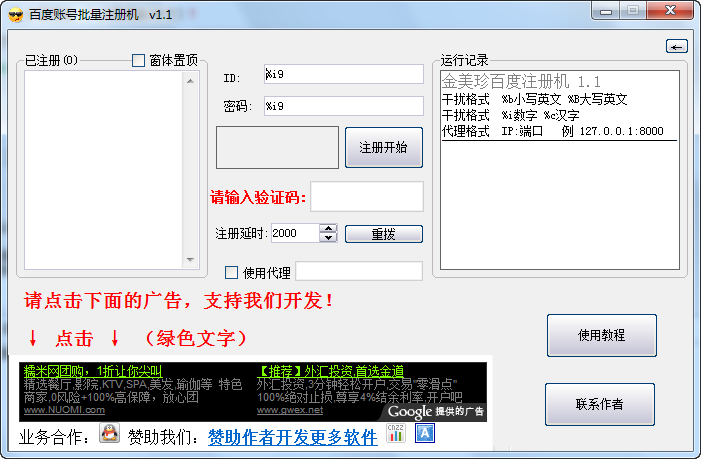 支持换代理ip注册,本工具的最大特点是简单方便快捷,无需安装,运行即可使用。