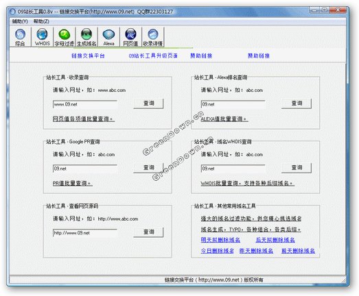 09站长工具查询速度快,记录可导入导出,方便站长及域名投资人使用,使用您的支持