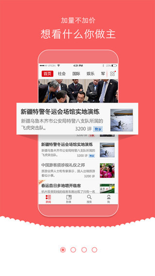 - 评论互动:家国大事,不是只有你在关心,与亿万网友一起围观犀利点评、逗比吐槽,一起互动交流、吐露心声