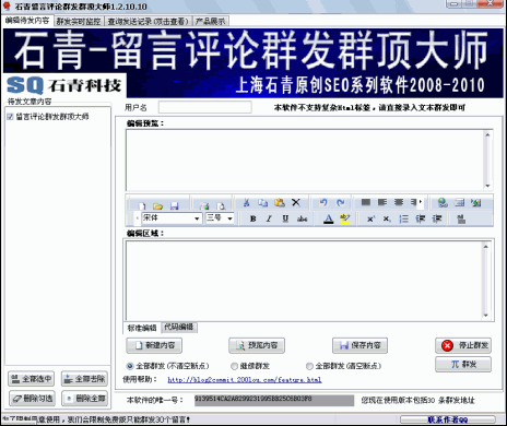 1、采用独有的图片验证码识别技术,和验证问题识别技术,使得群发可以完全自动;2、群发每条都做记录,并可以及时查看;