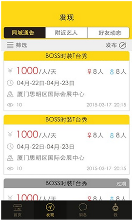 浏览附近艺人,筛选不同角色同城艺人。