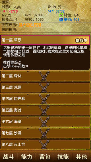 游戏中塔的层数基本上是无限的,失败后必须重新来过,4个属性点平均分配是最简单而又平衡的加点,对于平均分配的点数也让玩家更容易坚持下去。