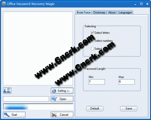 Office Password Recovery Magic V6.1.1.101 英文绿色特别版 Office Password Recovery Magic是一款界面友好的能够让用户找回忘记的office文档密码的工具。它可以恢复 *.xls, *.ppt, *.mdb, *.doc 以及 Office 2007文档的写保护密码,支持自定义密码长度或者强度,支持密码字典功能以帮你快速的找回密码