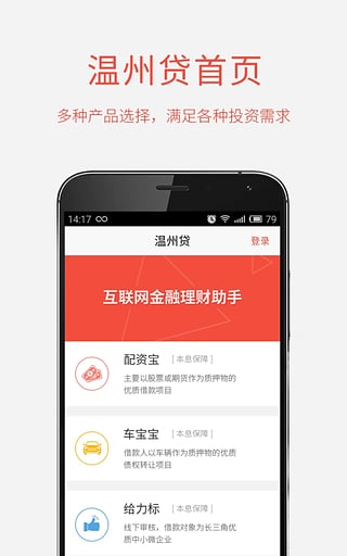 温州贷掌上理财帮用户全面展现详细的投资理财信息,让用户动动手指就能掌管好个人、家庭、企业的投资理财规划。2015年5月18号,获得上市公司报喜鸟领投的亿元注资,并联合知名互联网金融平台口袋理财,三方共同发起小凌鱼金融信息服务有限公司。在“互联网金融中小企业投融资高峰论坛”上,温州贷获得“互联网金融服务中小微经济优秀企业奖”奖项的背后让您稳健投资,安心理财!现温州贷APP隆重上线,新用户注册就送18888(PC领取)。动动手指,即可让你的财富轻松倍增。