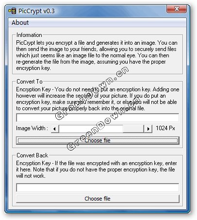 PicCrypt是一款免费软件,也是一款便携软件,可以将任意文件转换为24位的Bitmap图片文件,使用的是zLib压缩级别,PicCrypt转换为图片的过程非常快速,当然也支持将图片还原为原始文件。