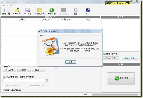 Fast Duplicate File Finder是一款免费的重复文件查找工具,可方便的搜索某一文件夹中重复的文件;Fast Duplicate File Finder通过比较文件内容判断是否为重复文件,这样即使有不同的文件名也不影响;Fast Duplicate File Finder基于快速的二进制比较法则,并支持图片、视频、音乐和文本的预览,当然也可以二进制模式预览;扫描完毕后,Fast Duplicate File Finder会自动选定创建时间较早的为待删除文件、而Fast Duplicate File Finder的自动标记法则也支持高级设置,包括设置扩展名、文件大小、文件日期、文件名等,当然你也可以设置需要排除的文件夹,从而可以保护系统文件和系统文件夹。